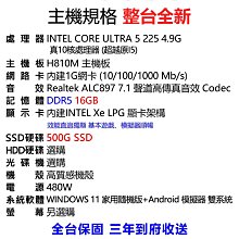 【16888元】挑戰最低價!高階INTEL U5-225 4.9G主機16G/500G/WIN11+安卓雙系統超越原I5更省電還有AI12847