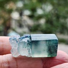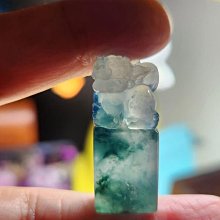 *頂園翡翠*《30年老件老坑泛光冰糯化種黃加綠金蜜黃三彩翡翡翠「大獅獸印章」緬甸玉雕墜》保證A貨 一元起標4817