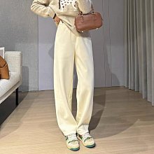 明星衣櫃=白色重工燙鉆針織褲子女冬季新款高腰加厚保暖寬松垂感直筒闊腿褲3819
