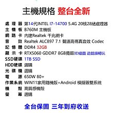 【42088元】頂級INTEL I7-14700主機32G/1TB獨顯RTX5060 8G含系統插電即用3D遊戲繪圖順12861