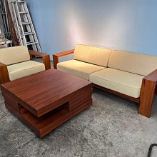 永茂全新二手家具館~新竹2手家具家電中古推薦*A122710*詩肯柚木1+3木沙發+大茶几*客廳傢俱 套房家具 三人沙發 皮沙發 貓抓皮 L型沙發 單人沙發97