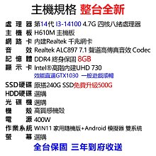 【14888元】全新高階14代I3-14100電腦主機8G極速SSD含WIN11+安卓常用軟體到府收送保固可刷卡分期12864